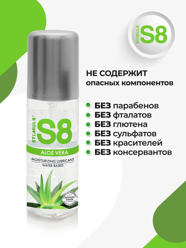 Гипоаллергенный гель с алоэ вера на водной основе без глицерина с невероятно шелковистым длительным скольжением "Stimul 8 Aloe Vera" - идеальное решение для людей с сухой чувствительной кожей и склонных к аллергии!