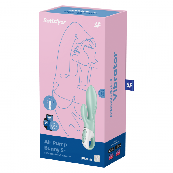 Вибратор для точки G и клитора с увеличением объема "Satisfyer Air Pump Bunny 5+" + приложение, мятный